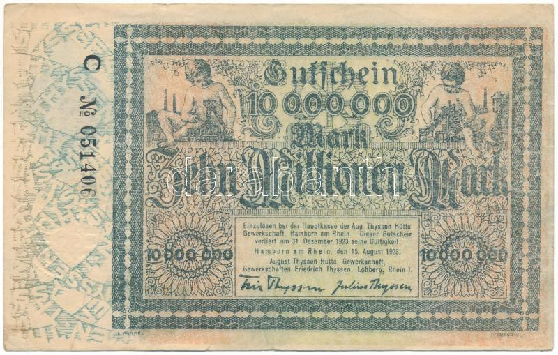 Németország / Weimari Köztársaság / Hamborn 1923. 10.000.000M szárazpecséttel T:F pici szakadások