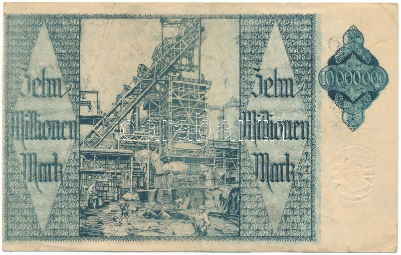 Germany / Weimar Republic / Hamborn 1923. 10.000.000 Mark with embossed stamp C:F tiny tears