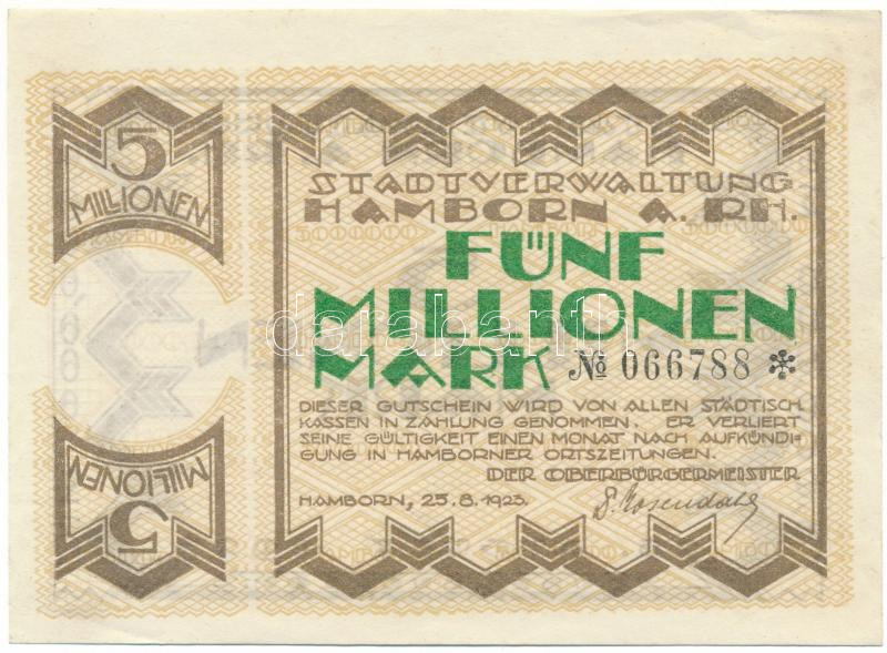 Németország / Weimari Köztársaság / Hamborn 1923. 5.000.000M T:VF