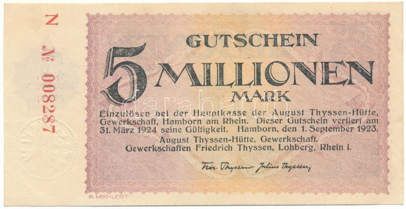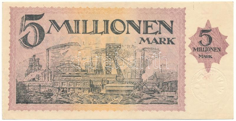 Németország / Weimari Köztársaság / Hamborn 1923. 5.000.000M szárazpecséttel T:XF sarokhajtások