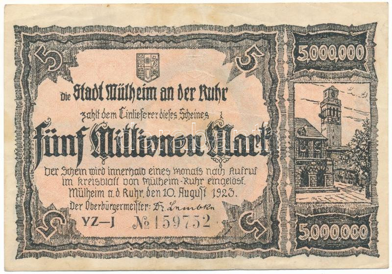 Németország / Weimari Köztársaság / Mülheim a. d. Ruhr 1923. 5.000.000M szárazpecséttel T:F