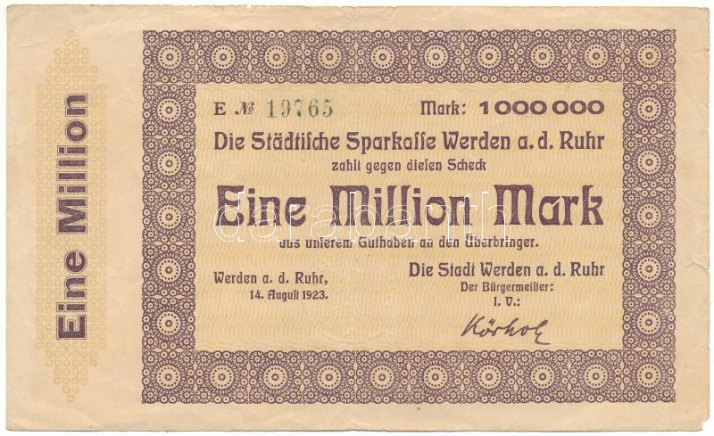 Germany / Weimar Republic / Werden a. d. Ruhr 1923. 1.000.000 Mark with embossed stamp C:VG