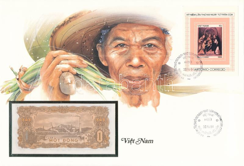 Vietnam 1976. 1 Dong in envelope with stamp and cancellation C:UNC