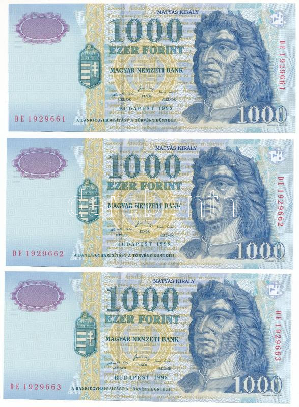 1998. 1000Ft (3x) sorszámkövetők "DE 1929661 - DE 1929663" T:UNC,AU