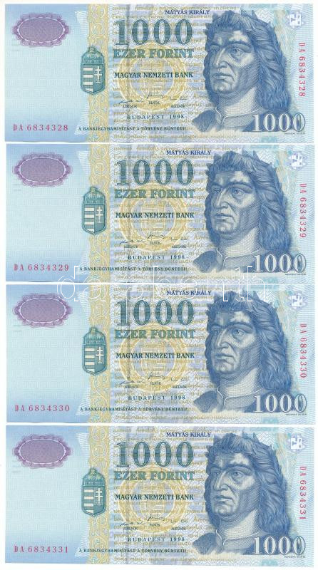 1998. 1000Ft (4x) sorszámkövetők "DA 6834328 - DA 6834331" T:AU