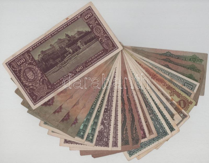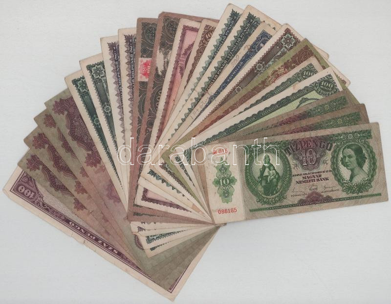 Beschreibung: Vegyes, 23db-os (13xklf), Pengő bankjegyekből álló tétel T:F,VG, több firkált