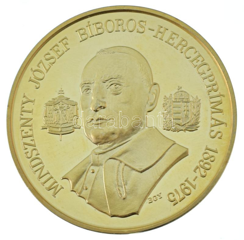 Bognár György (1944-) 1991. "Mindszenty József bíboros-hercegprímás 1892-1975" kétoldalas, aranyozott emlékérem (42,5mm) T:UNC,AU (eredetileg PP)
