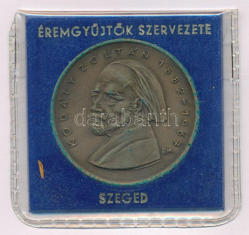 Borsos Miklós (1906-1990) 1982. "Kodály Zoltán 1882-1967 / Szeged" kétoldalas bronz emlékérem, "Éremgyűjtők Szervezete - Szeged" feliratú műanyag tokban (42,5mm) T:AU patina