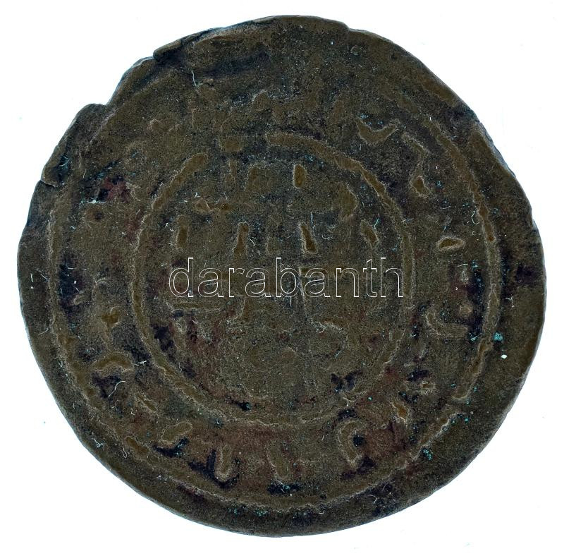 1172-1196. Kufikus rézpénz Cu "III. Béla" (1,69g) T:VF, patina, pici ph. Hungary 1172-1196. Copper Coin with unreadable Kufic Arabic script Cu "Béla III" (1,69g) C:VF, patina, small edge error Huszár: 73., Unger I.: 115.