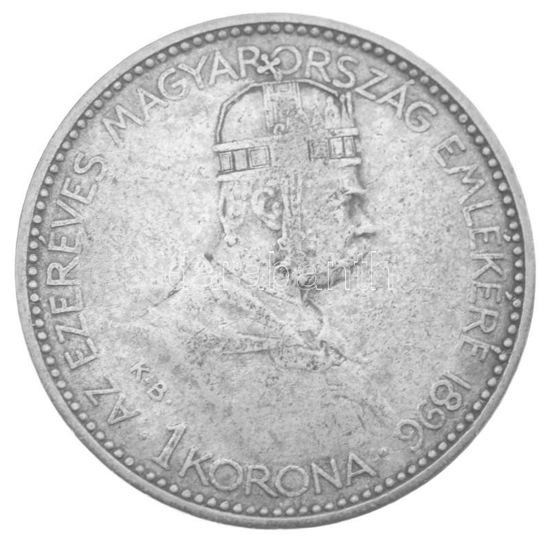 1896KB 1K Ag "Millennium" eredeti, dombornyomott, "Millenniumi Koronaérem - 1896" feliratú barna díszdobozban T:VF
