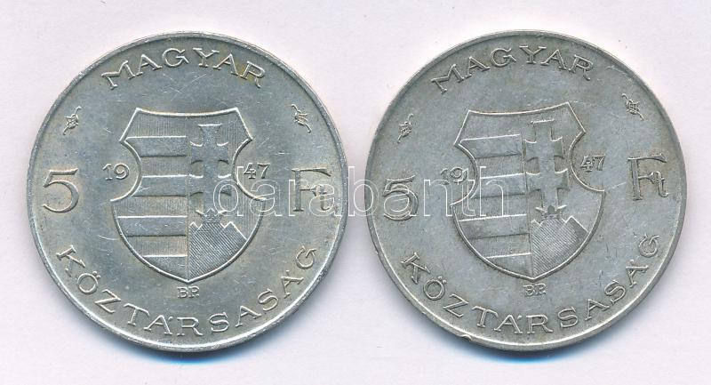 1947. 5Ft Ag "Kossuth" (2x) T:VF,F patina