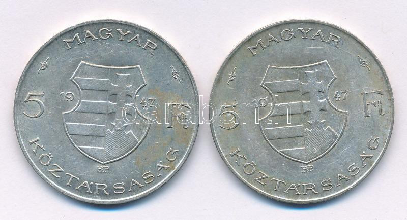 1947. 5Ft Ag "Kossuth" (2x) T:VF,F patina