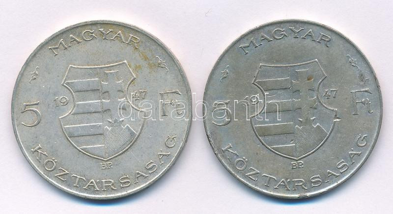 1947. 5Ft Ag "Kossuth" (2x) T:VF,F patina