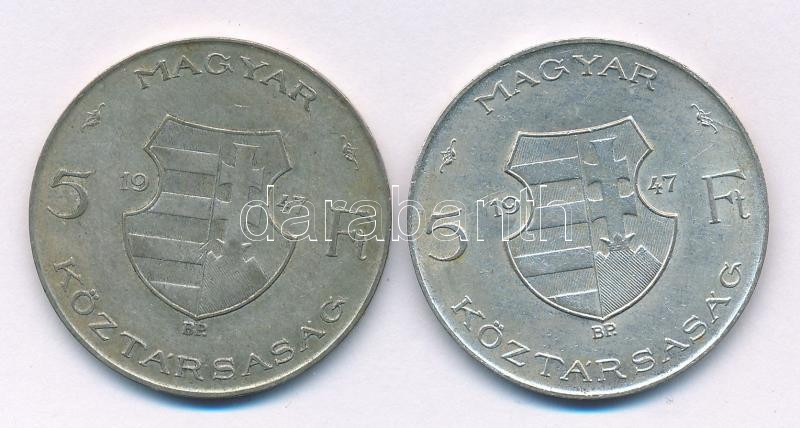 1947. 5Ft Ag "Kossuth" (2x) T:VF,F patina