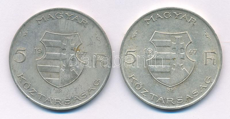1947. 5Ft Ag "Kossuth" (2x) T:VF,F patina