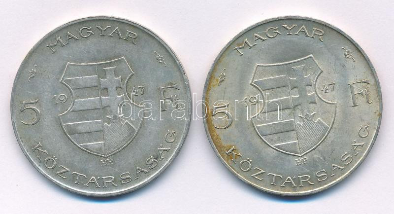 1947. 5Ft Ag "Kossuth" (2x) T:VF,F patina