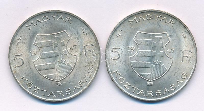 1947. 5Ft Ag "Kossuth" (2x) T:XF patina