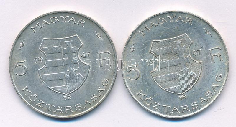 1947. 5Ft Ag "Kossuth" (2x) T:XF patina