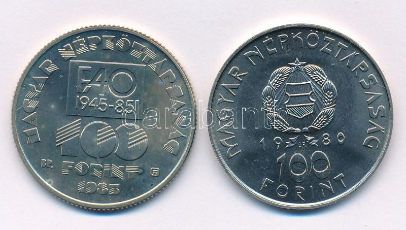 1980. 100Ft Ni "Szovjet-magyar közös űrrepülés" + 1985. 100Ft Cu-Ni "FAO" T:UNC,AU