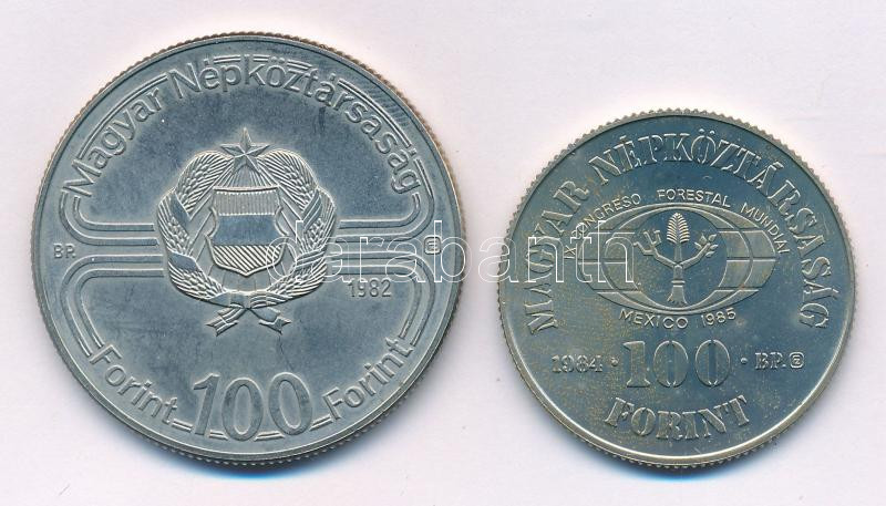 1982. 100Ft Cu-Ni "Labdarúgó világbajnokság 1982" + 1984. 100Ft Cu-Ni "FAO - Ha kivágod, ültess is!" T:AU