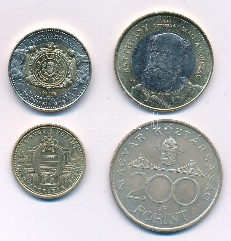 1994. 200Ft Ag "Deák" + 2021. 5Ft "75 éves a Forint - O" + 2023. 200Ft "Batthyány" kapszulában + 2024. 100Ft "MNB" kapszulában T:AU,XF