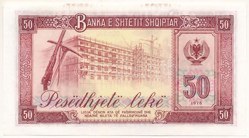 Albania 1976. 50 Leke with red "SPECIMEN" overprint and "000" serial number C:AU