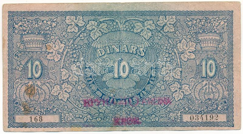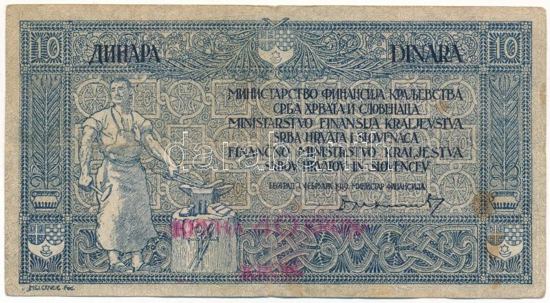 Yugoslavia / Kingdom of the Serbs, Croats and Slovenes 1919. 10 Dinara with red "40 Kronen" overprint C:F spotted