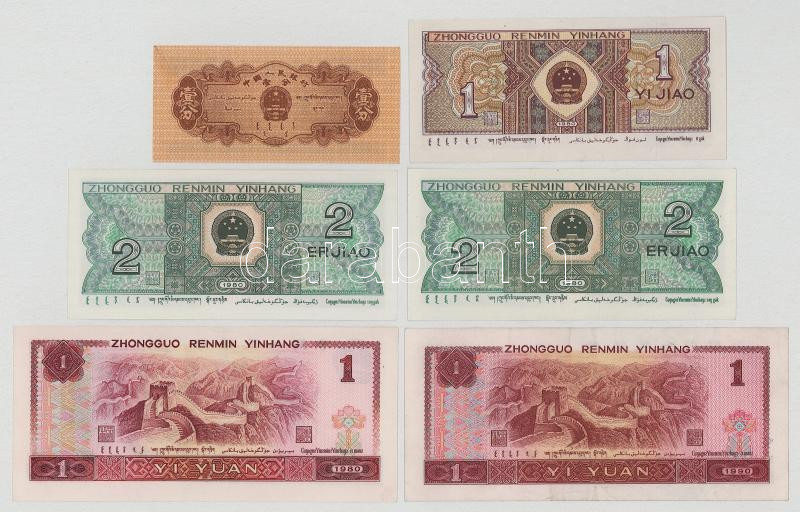 Kína 1980. 1j + 2j (2x) + 1Y + DN 1db rizsjegy + 1990. 1Y T:AU-F szép papír
