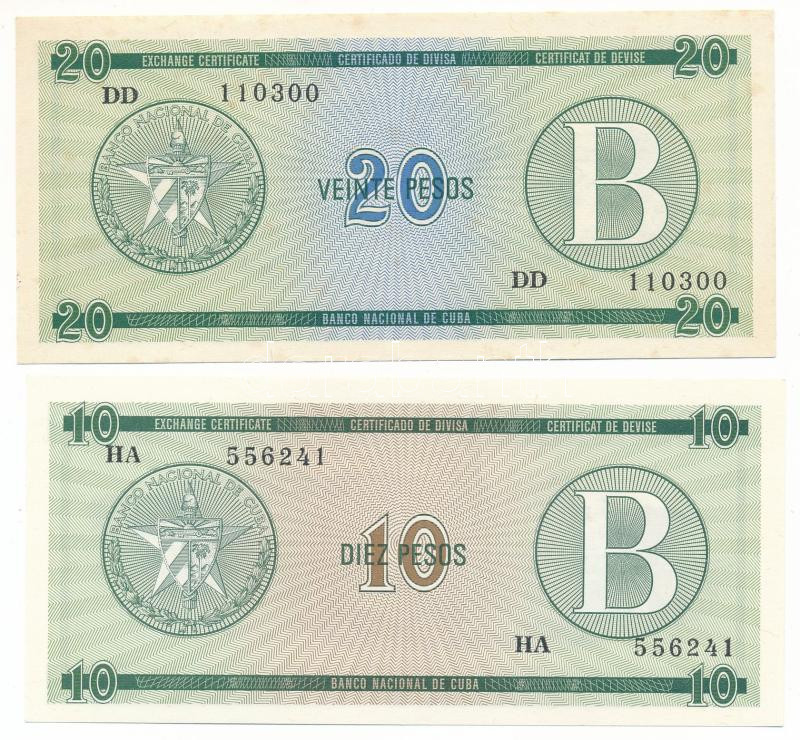 Cuba ND (1985.) 10 Pesos + 20 Pesos "B" Foreign Exchange Certificates C:UNC-AU