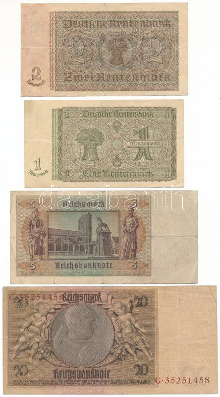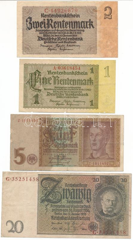 German Empire / Weimar Republic 1929. 20 Reichsmark + Harmadik Birodalom 1937. 1 Rentenmark + 2 Rentenmark + 1942. 5 Reichsmark C:F-VG