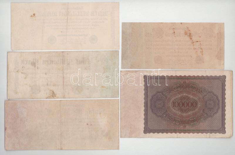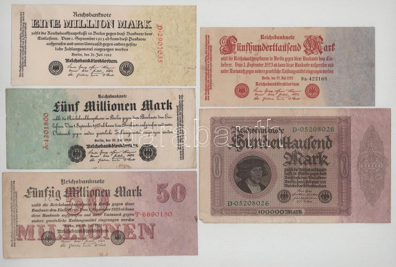 Német Birodalom / Weimari Köztársaság / Berlin 1923. 100.000M + 500.000M + 1.000.000M + 5.000.000M + 50.000.000M T:F