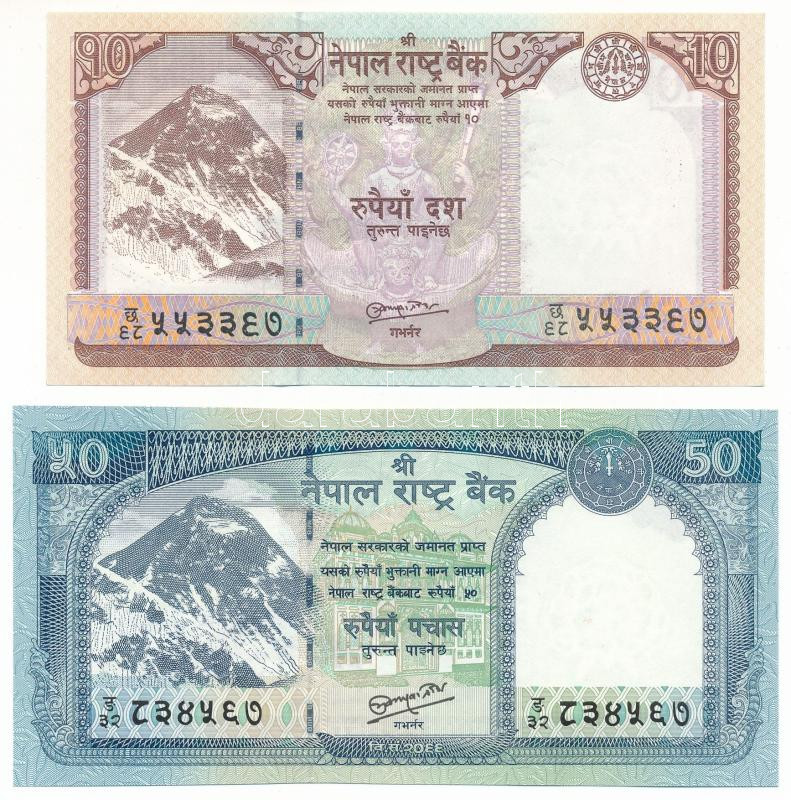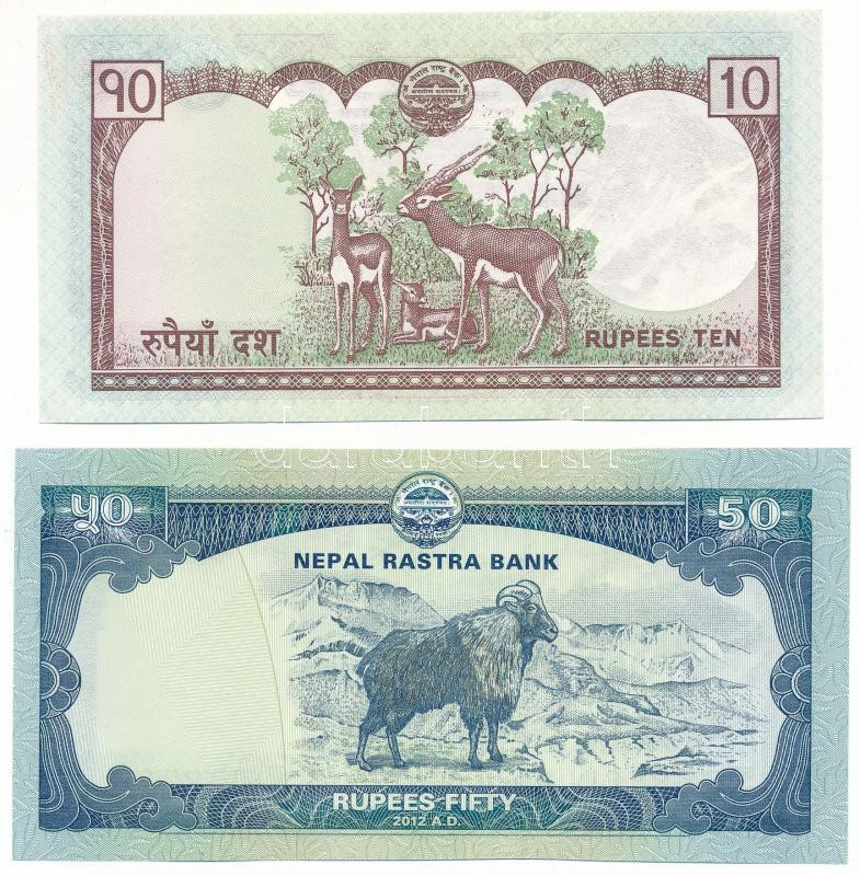 Nepal ND (2010-2015) 10 Rupees + 2012. 50 Rupees C:AU