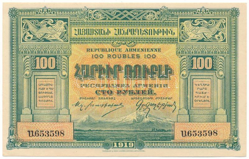 Örményország / Első Örmény Köztársaság 1919. 100R "653598" T:XF hajtatlan