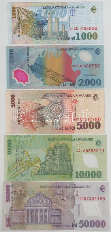Romania 1998-2001. 1000 Lei - 50.000 Lei (5xdiff) C:UNC-XF