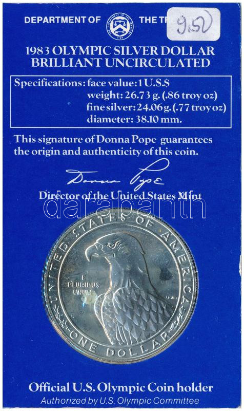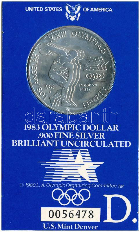 Amerikai Egyesült Államok 1983D 1$ Ag "XXIII. Nyári Olimpiai Játékok, Los Angeles" eredeti, sorszámozott karton díszcsomagolásban T:BU