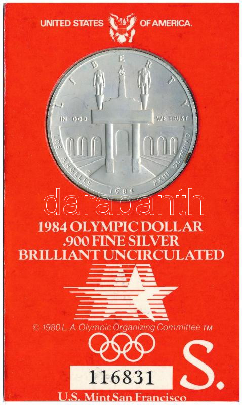 Amerikai Egyesült Államok 1984S 1$ Ag "XXIII. Nyári Olimpiai Játékok, Los Angeles" eredeti, sorszámozott karton díszcsomagolásban T:BU