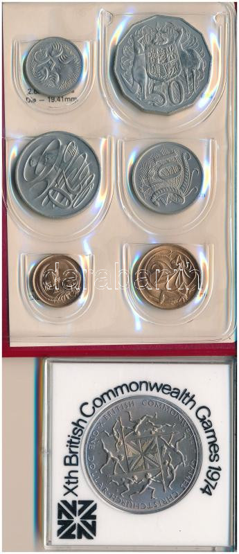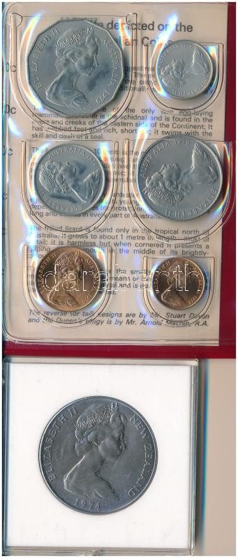 Ausztrália 1979. 1c-50c (6xklf) forgalmi sor eredeti tokban + Új-Zéland 1974. 1D Cu-Ni "Nemzetközösségi Játékok" eredeti műanyag tokban T:UNC-AU