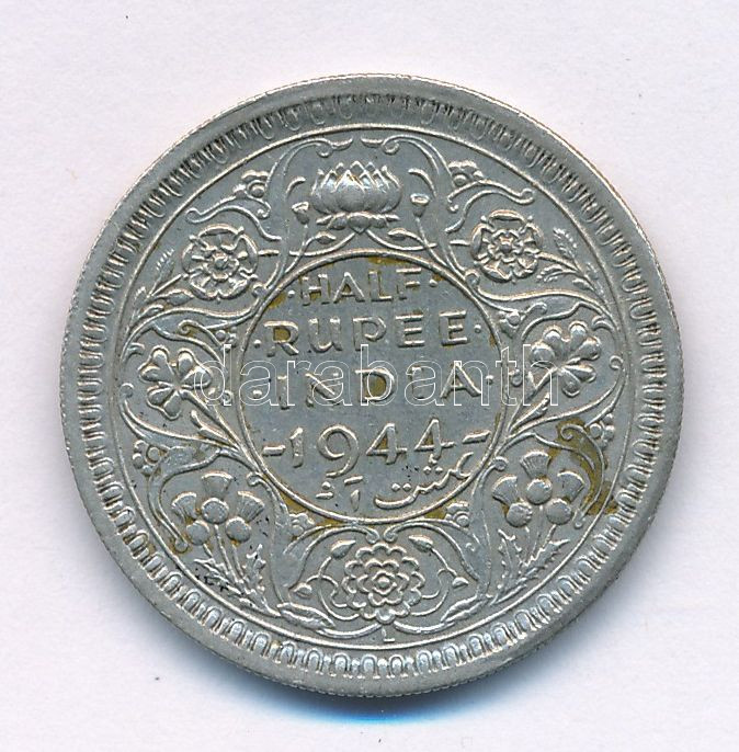 British India 1944. 1/2 Rupee Ag "George VI" C:XF patina