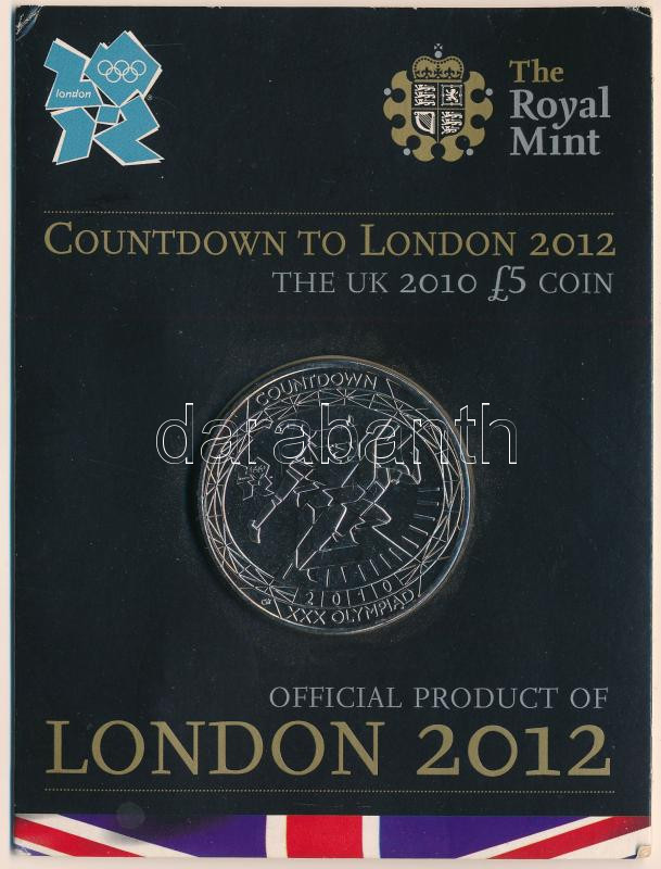 United Kingdom 2010. 5 Pounds Cu-Ni "2012 Summer Olympics, London - Countdown" in cardboard sheet C:BU the adhesive on the sheet is partially released