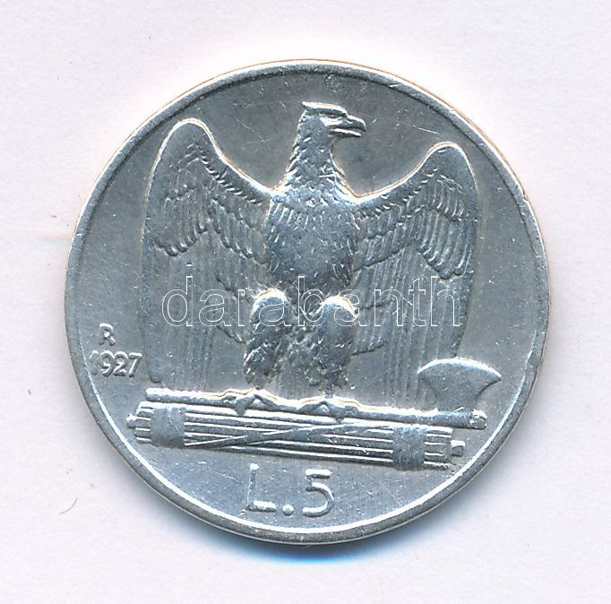 Olaszország 1927R 5L Ag "III. Viktor Emánuel" T:VF