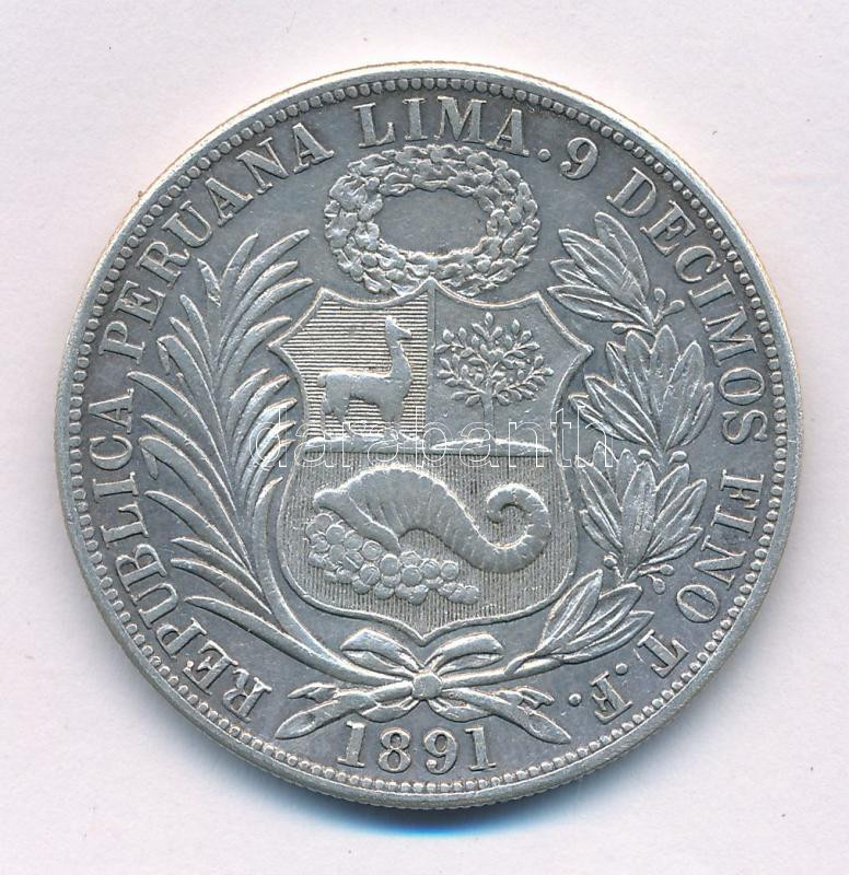 Peru 1891. 1S Ag T:VF Peru 1891. 1 Sol Ag C:VF Krause KM#196.24