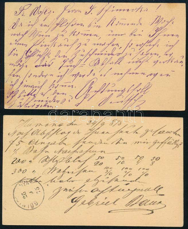 1875-1876 2 db díjjegyes levelezőlap: "HOMONNA" + "POZSONY / VÁROS"