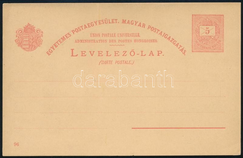 1896 5kr millenniumi díjjegyes levelezőlap, használatlan