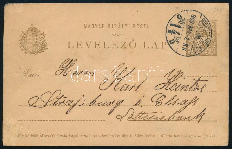 1909 Levelezőlap "BUDAPEST-GYŐR-WIEN / 14 D" mozgóposta bélyegzéssel