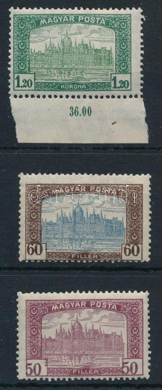 1919 Magyar Posta ívszéli 1,20K eltolódott középrésszel, 50f és 60f eltolódott értékszámmal
