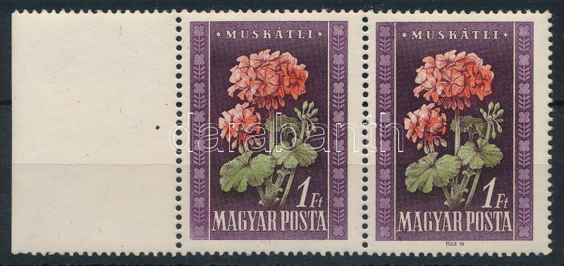 1950 Virág (I.) 1Ft pár nagy ívszéllel, a bal oldali a tervező neve nélkül (7.000+)