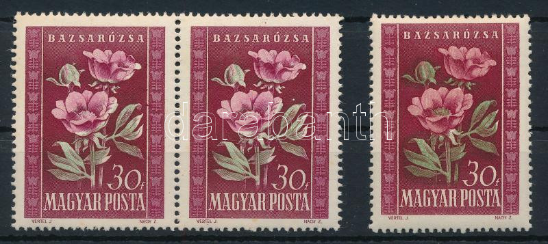 1950 Virág (I.) 30f pár eltolódott világos rózsaszín és zöld színnyomattal + támpéldány