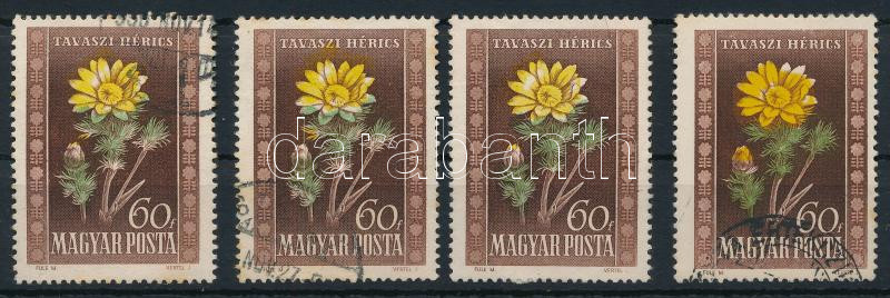 1950 Virág (I.) 4 db 60f eltolódott sárga és zöld színnyomattal