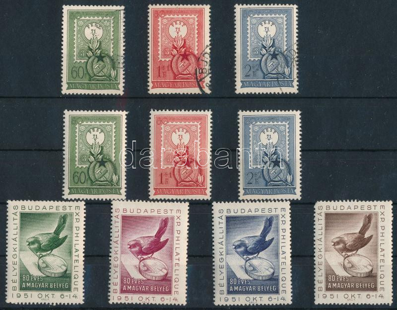 1951 80 éves a magyar bélyeg postatiszta és bélyegzett sor + 4 klf levélzáró