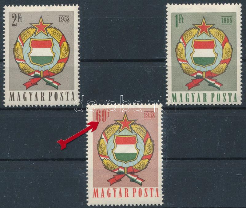 1958 Népköztársasági címer sor, a 60f lemezhibával